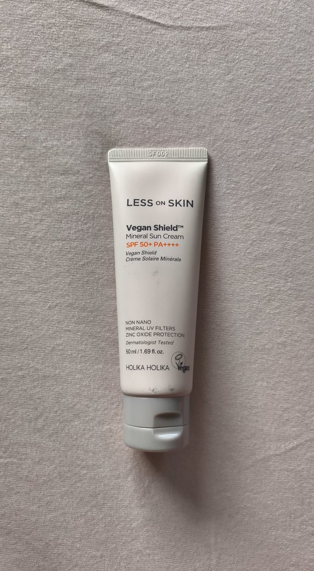 Holika Holika Vegan Shield Mineral Güneş Kremi SPF 50+ PA++++ koruma sağlar, non-nano mineral UV filtreler ve çinko oksit içerir. Dermatolojik olarak test edilmiştir. 2 ya da 3 kez kullandım.