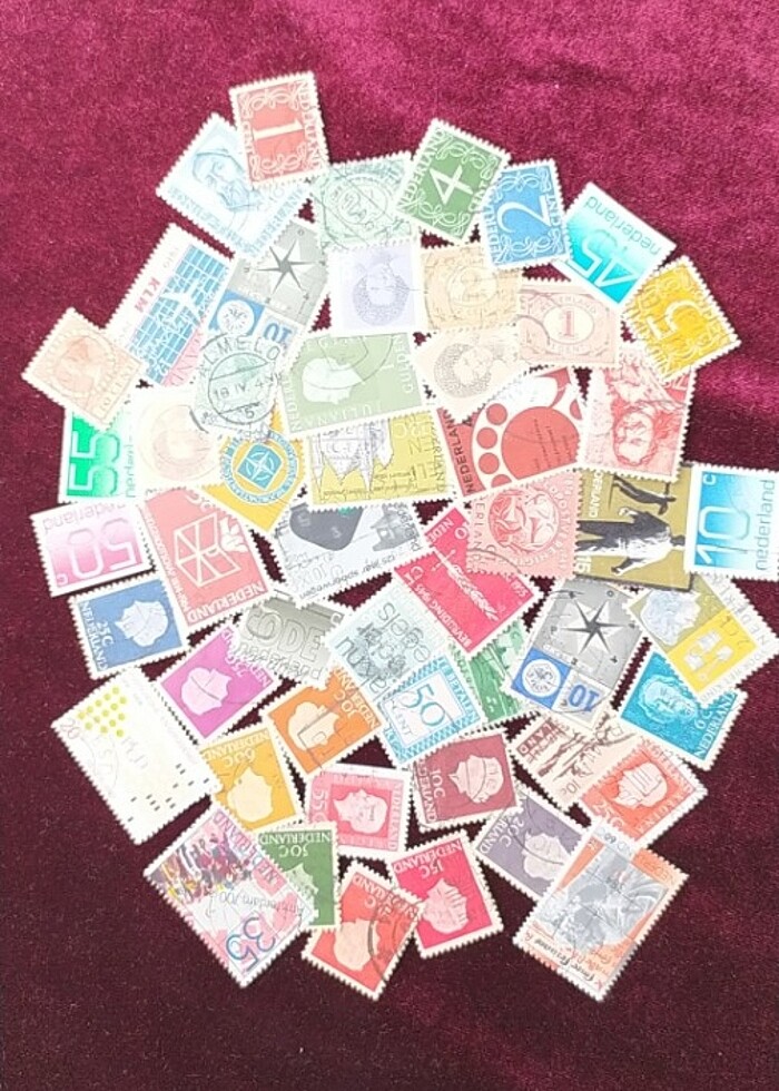 Birbirinden farklı, Damgalı Temiz, 50 Adet Hollanda Posta Pulları Koleksiyonu.