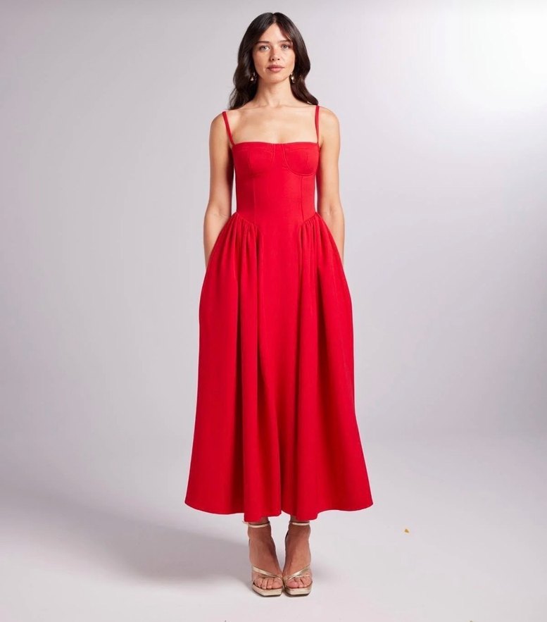 Holly lolly Askılı Gloplu Uzun Bridged Elbise Kırmızı