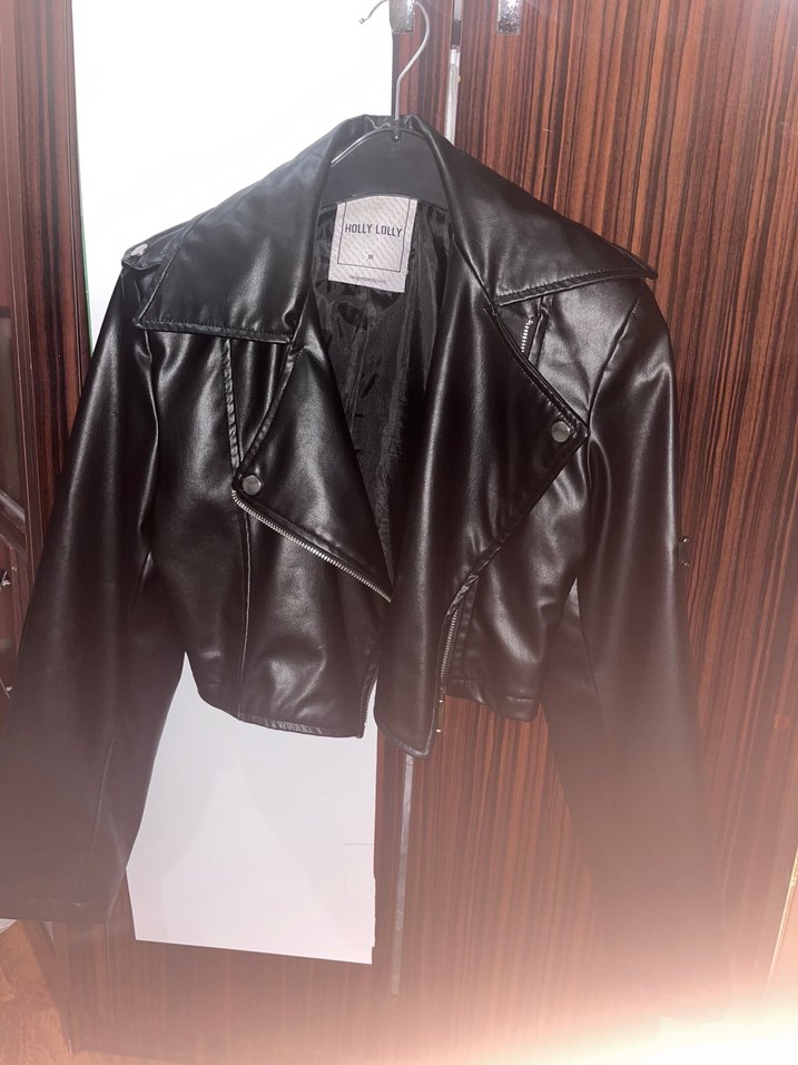 Siyah deri, düğmeli, keskin yakalı ve askılı kollu dar kesim biker ceket, gotik ve yenilikçi tarz için uygundur. Hiçbir defosu yok yesyeni hiç giymedim