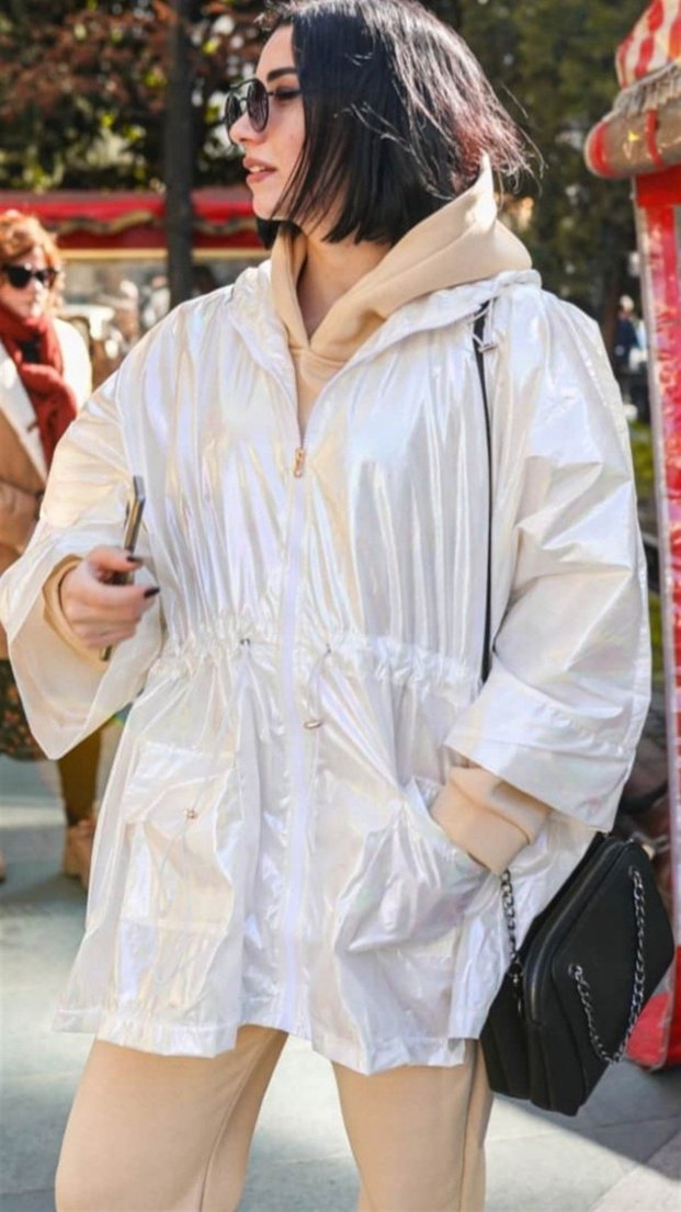 Hologram Yağmurluk, yazı detaylı, tek ebat fakat M-L için uygun.