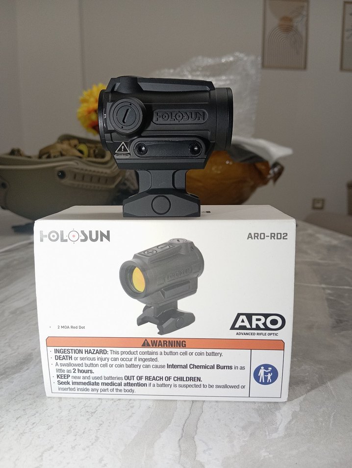 Holosun ARO-RD2 Red Dot (2 MOA) sıfır hiç kullanılmadı balistik marketten Eylül ayından alındı faturası mevcuttur herşeyi tam kutulu özellikler fotoğrafda ekli