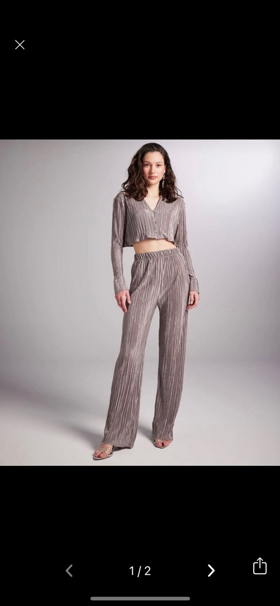 Gri renkte pilili, rahat kesim, normal midi boy kadın kumaş pantolon. Yumuşak sentetik kumaştan üretilmiştir. Rahat ve şık parti kombinleri için uygundur.