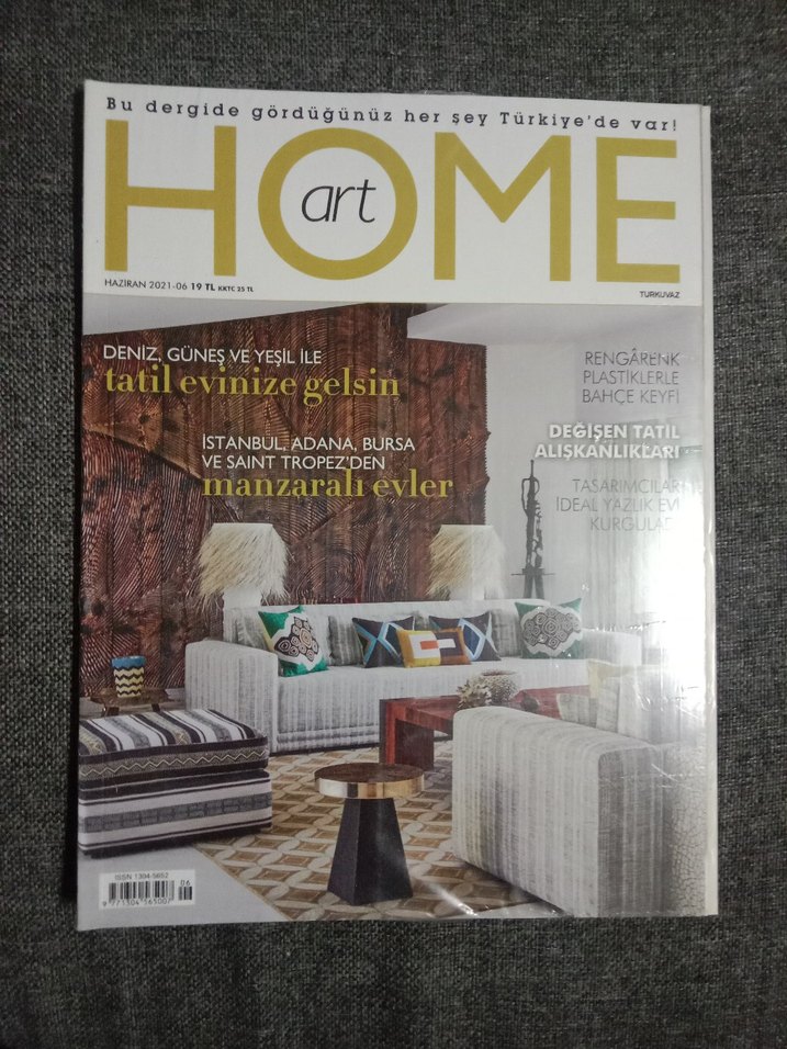 Haziran 2021 sayılı Home Art dergisi, rengarenk plastikler, bahçe keyfi ve değişen tatil alışkanlıkları ile İstanbul, Adana, Bursa ve Saint Tropez manzaralı evleri içeriyor.
