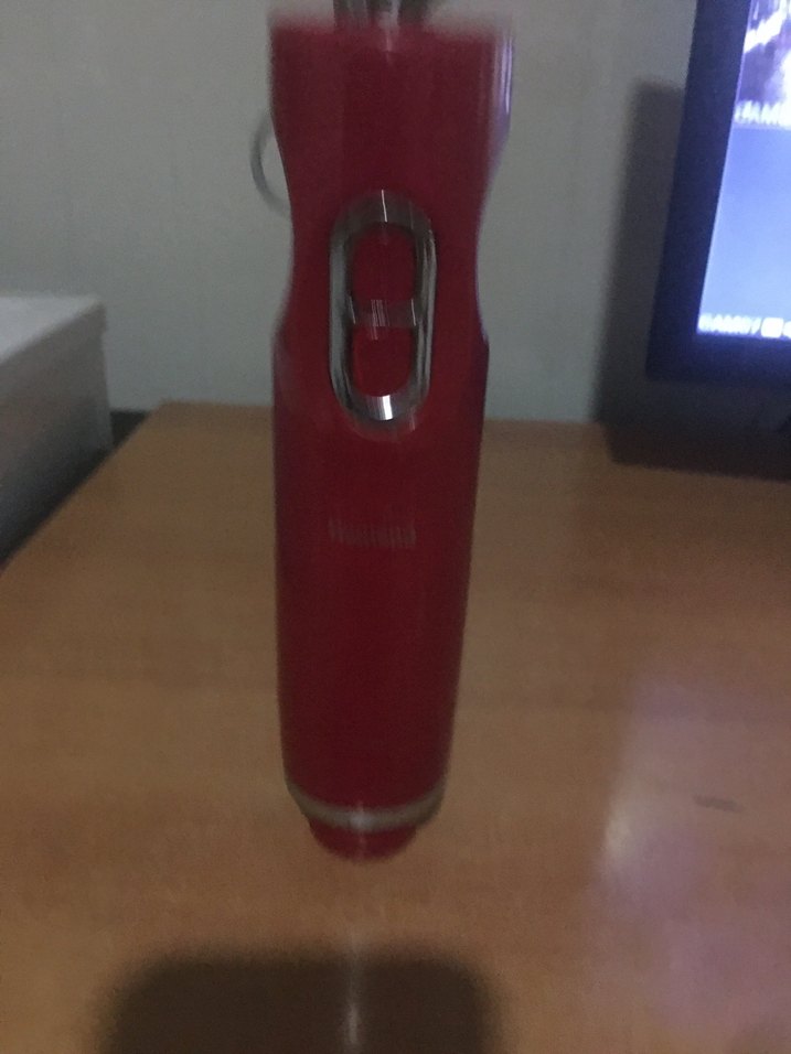 Kırmızı parlak renkte, kolay kullanım için basit kontrol düğmeleri ve şık tasarıma sahip blender.