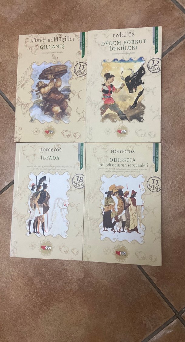 Homeros'un İlyada ve Odysseia eserleri ile Gilgamış ve Dedem Kobot öykülerini içeren, resimli ilkokul kitapları seti.