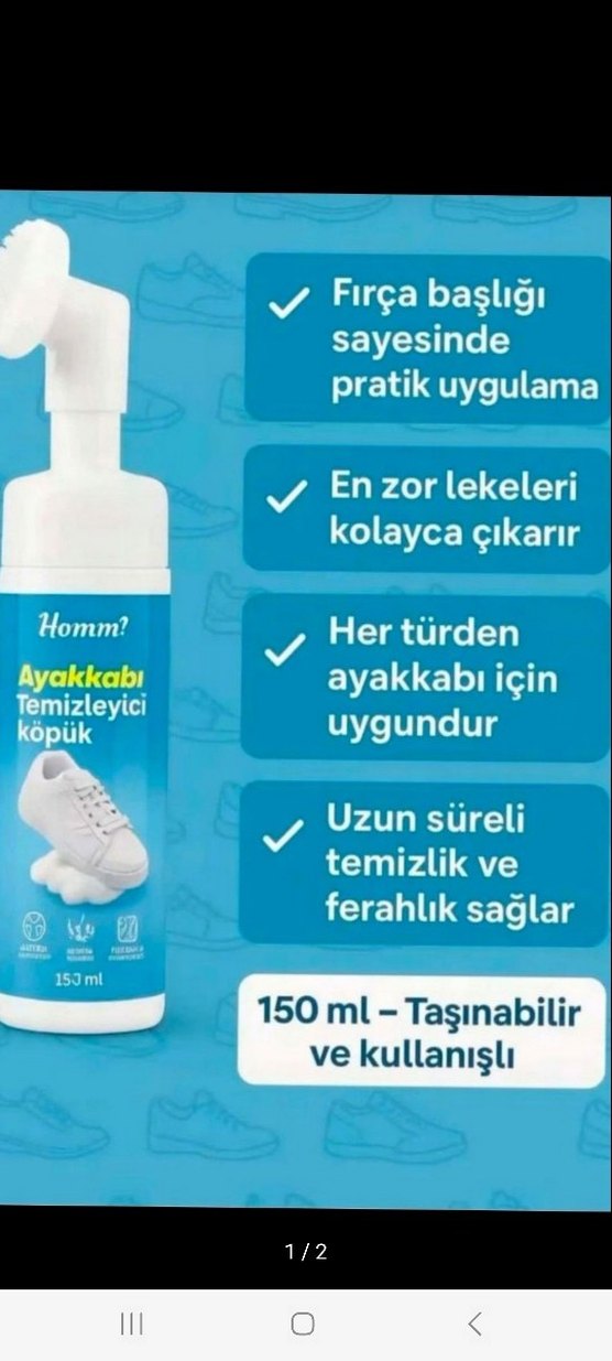 Homm? ayakkabı temizleyici köpük, fırça başlığı sayesinde pratik uygulama sağlar. En zor lekeleri kolayca çıkarır, her türden ayakkabı için uygundur. Uzun süreli temizlik ve ferahlık sunar. 150 ml taşınabilir ve kullanışlıdır.