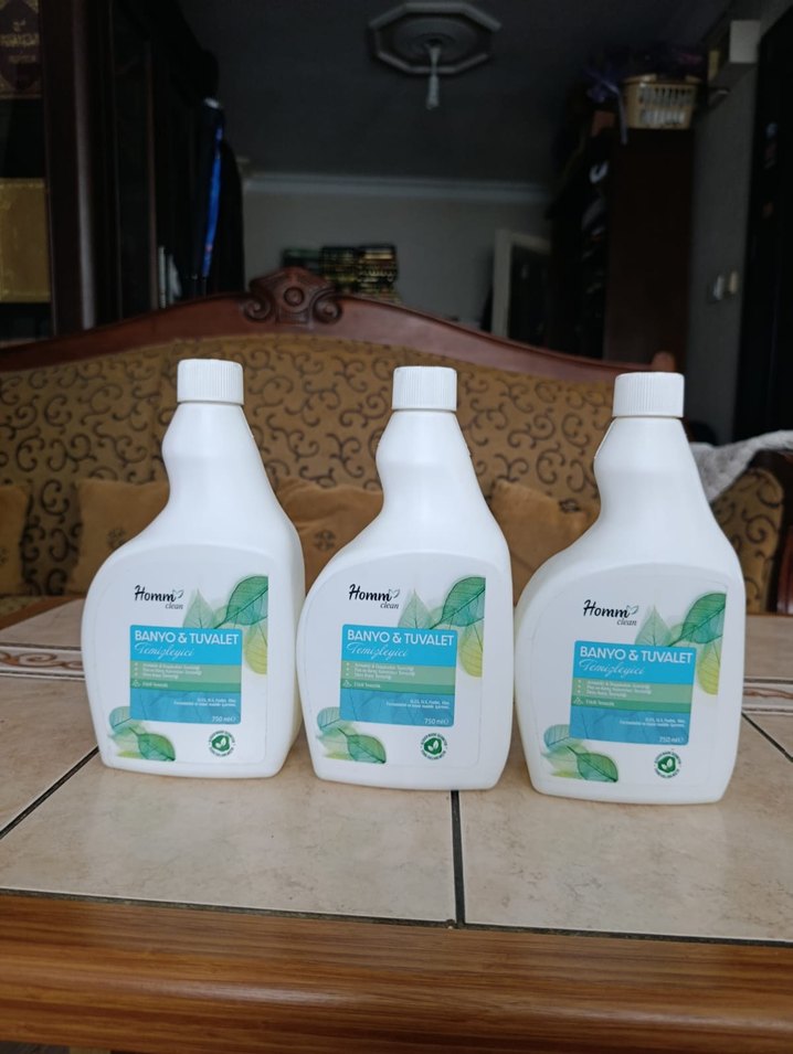 Homm markalı banyo ve tuvalet temizleyici etkili temizlik ve ferah koku sağlar.