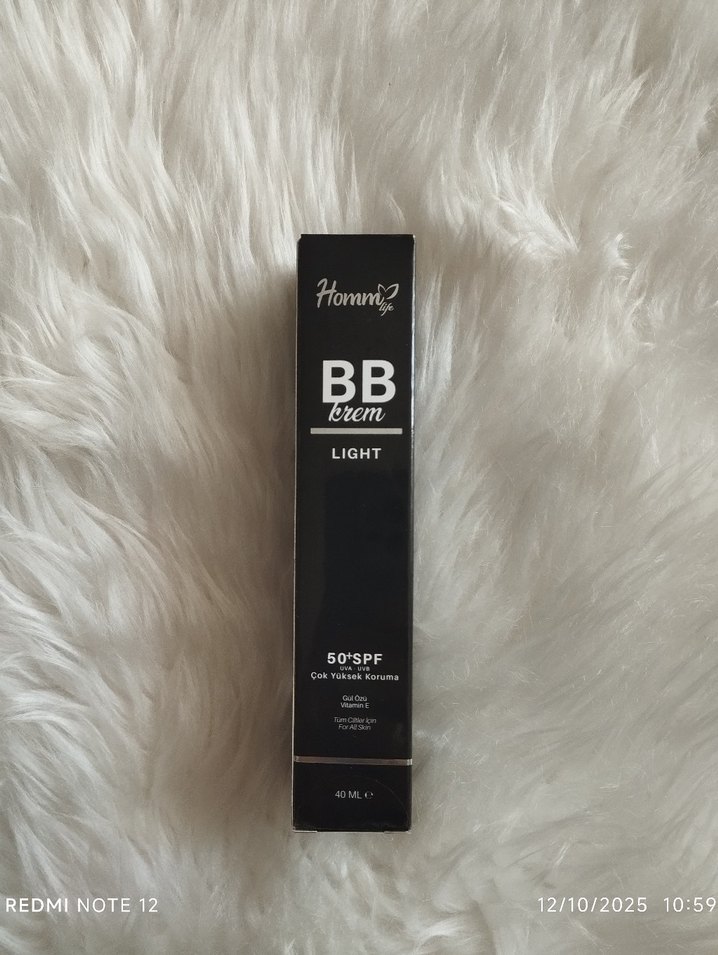 Homm BB Krem Light, 50 SPF koruma sağlar ve cilt tonunu eşitler. Hafif bej renk ve 40 ml içerik sunar. ☀️