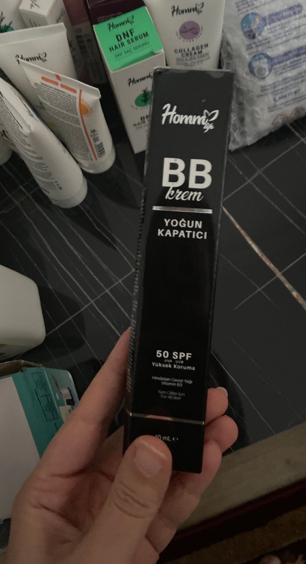 Homm BB krem, yoğun kapatıcılık ve 50 SPF yüksek koruma sağlar. Vitamin E içerir ve pürüzsüz bir bitiş sunar.
