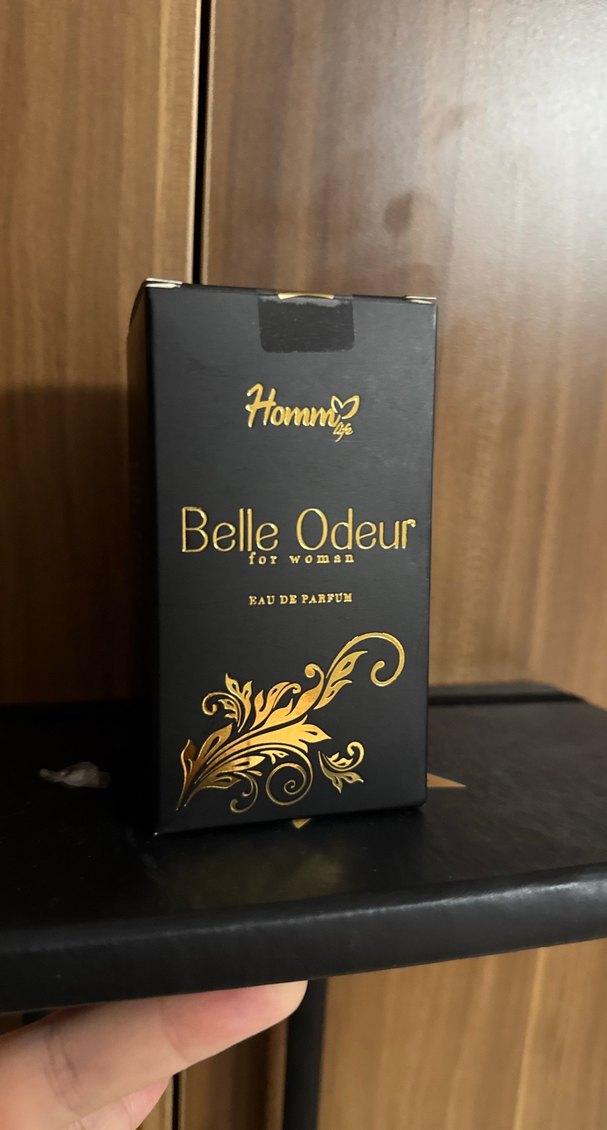 Homm Belle Odeur kadınlar için tasarlanmış Eau de Parfum, şık siyah ve altın renkli kutuda sunuluyor.