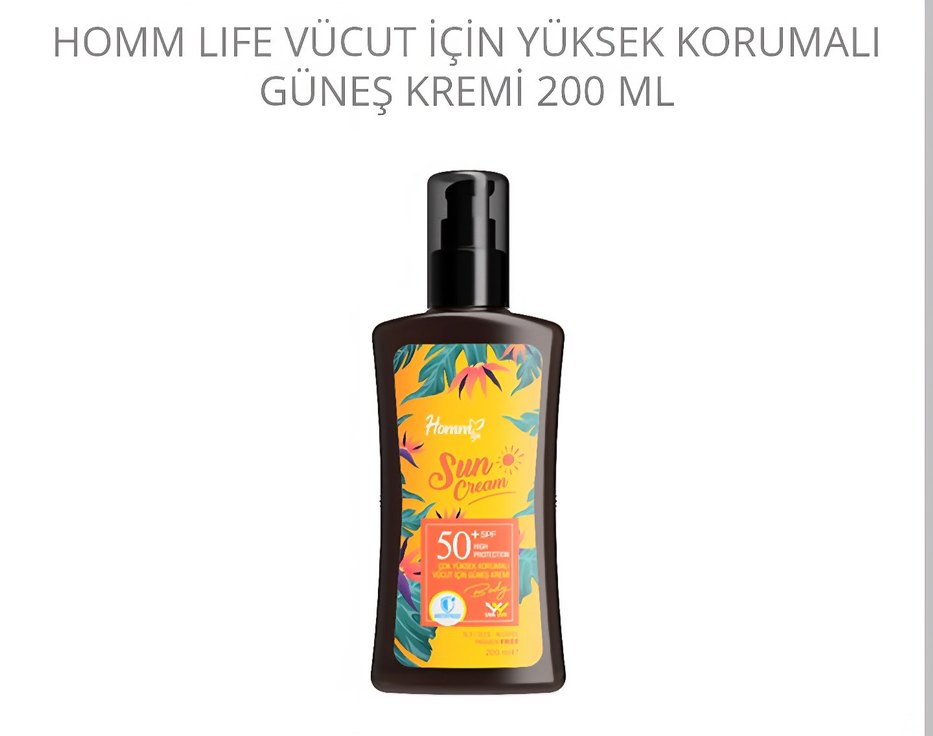 homm bitkisel 200 ml'lik bu güneş kremi, SPF 50 ile yüksek koruma sağlar ve vücut için uygundur. Cildi zararlı güneş ışınlarından korur.