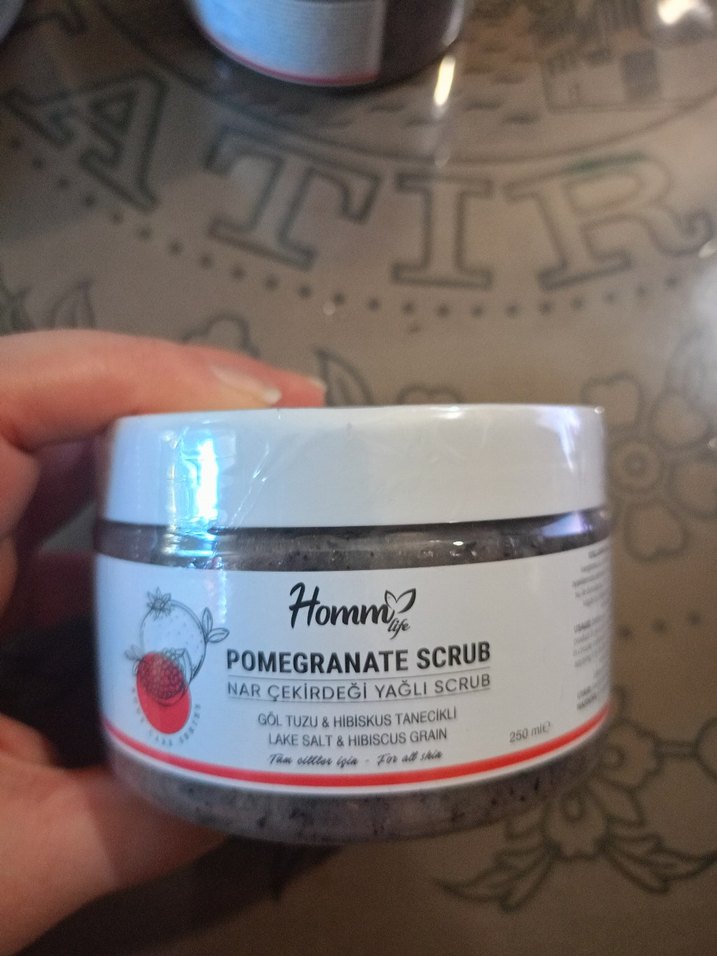 nar çekirdeği yağı içeren, göl tuzu ve hibiskus taneleriyle cildi nazikçe temizleyen vücut peelingi.