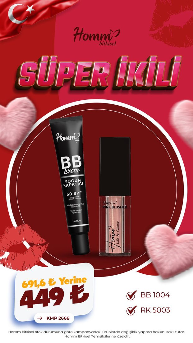 SÜPER İKİLİ – Sağlık & Güç Paketi Deve Dikeni & Enginar Zerdeçal ✨ Karaciğerinizi ve bağışıklığınızı destekleyen bu güçlü ikili şimdi özel fiyata! 884 ₺ yerine sadece 549 ₺ ✔ TK 1001 ✔ TK 1005 KMP 2665 kodu ile hemen sipariş ver! SÜPER İKİLİ – Güzellik & Işıltı Paketi BB Krem 50 SPF – Yoğun Kapatıcı Magical Pink Blusher ✨ Hem koruma hem de kusursuz görünüm için makyaj çantanızın vazgeçilmezi! 691,6 ₺ yerine sadece 449 ₺ ✔ BB 1004 ✔ RK 5003 KMP 2666 kodu ile hemen sepete ekle! SÜPER İKİLİ – Temizlik & Hijyen Paketi Beyazlar İçin Oxi Power Deterjan Leke Çıkarıcı Sprey ✨ Lekelere meydan okuyan, bembeyaz çamaşırlar için süper çözüm! 611 ₺ yerine sadece 399 ₺ ✔ HT 3001 ✔ HT 2012 KMP 2667 kodu ile tükenmeden al!
