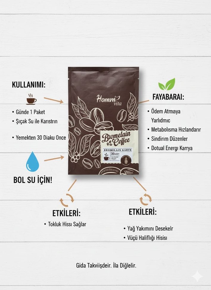 HOMM BİTKİSEL Bromelain Kahve Tozu