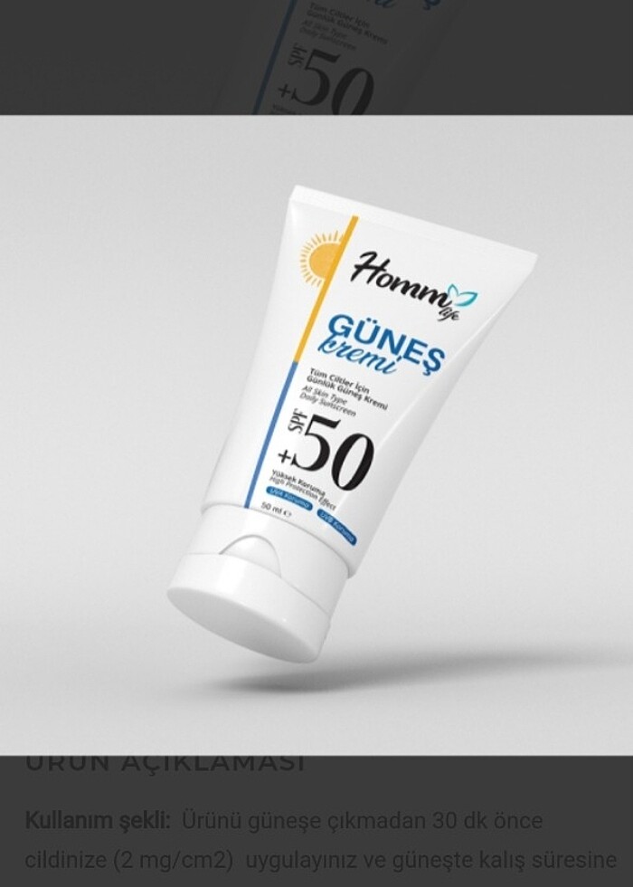 Homm bitkisel güneş kremi