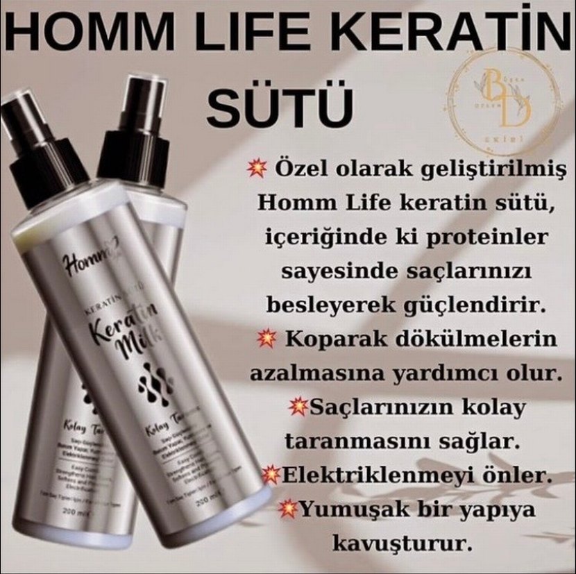 Keratin içeren saç sütü, saçları besleyip güçlendirir, koparak dökülmeyi azaltır, kolay taranmasını sağlar, elektriklenmeyi önler ve yumuşaklık kazandırır. İlan açtırınız
