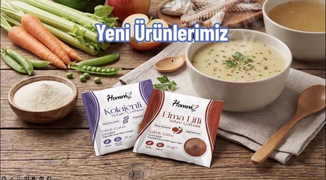 ( Ürün hakkında bilgi ve fiyat sormak için DM mesaj atabilirsiniz) Hommy markalı, elma lifli kahverengi sebze çorbası tozu, hızlı ve besleyici bir öğün sunar. Her 20g paket kolay hazırlanır ve lif açısından zengindir.