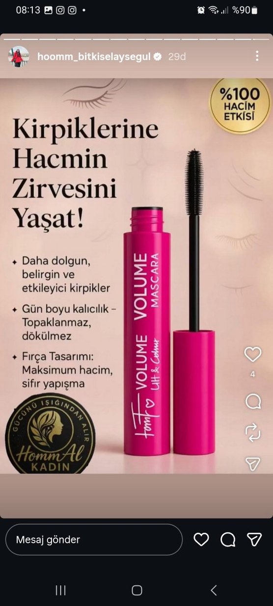 Homm bitkisel Pembe Renkli Hacim Veren Maskara