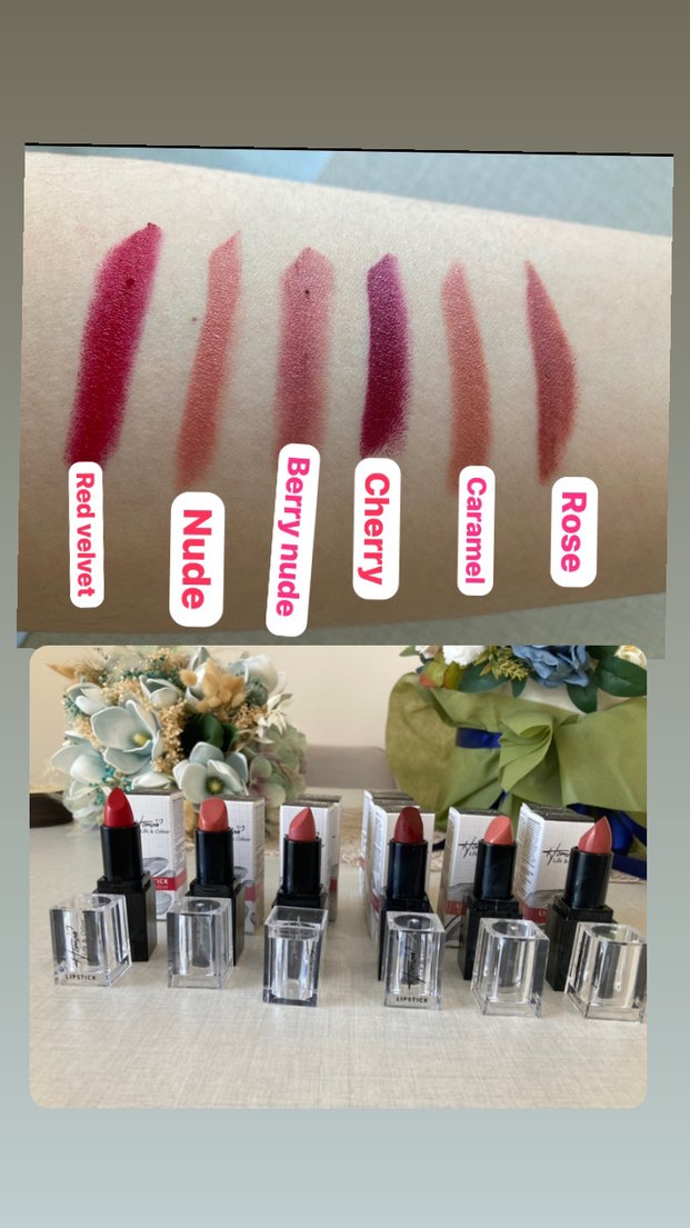 Rose, Nude, Caramel, Cherry, Berry Nude ve Red Velvet tonlarında, hafif kırmızı renkli ruj seti. Canlı ve pürüzsüz bir bitiş sunar.