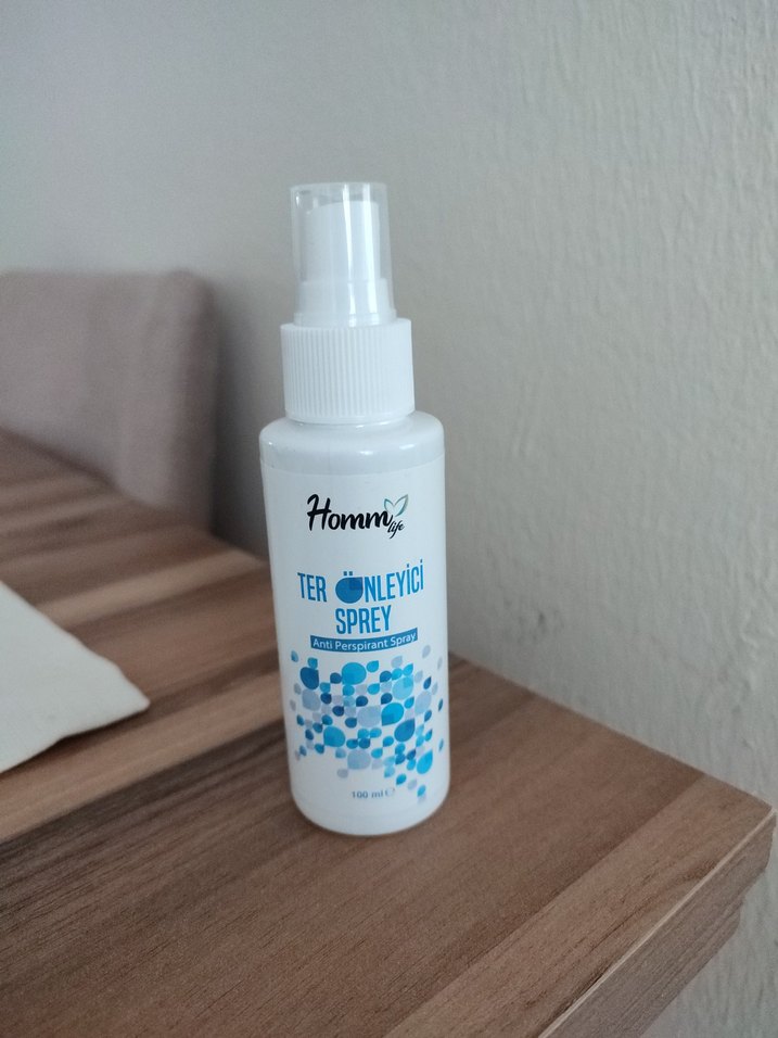 Homm ter önleyici sprey, terlemeyi önleyerek ferahlık sağlar. 100 ml şişede sunulur.