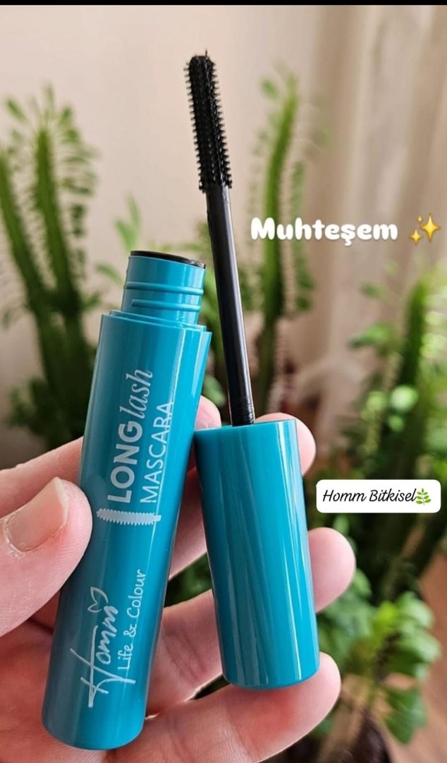 Homm Bitkisel markasına ait turkuaz renkte, uzun kirpik etkisi sağlayan maskara. İnce fırçası ile kolay uygulama sunar. ✨