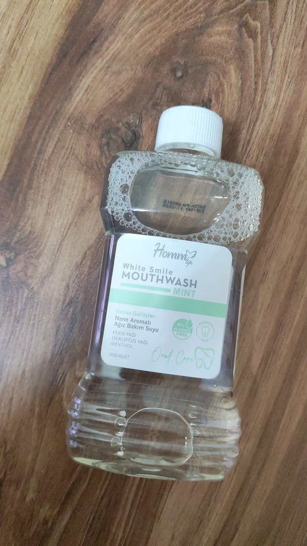 Homnie White Smile nane aromalı ağız bakım suyu, ferahlatıcı temizlik sağlar. 250 ml, mentollü serinlik sunar.
