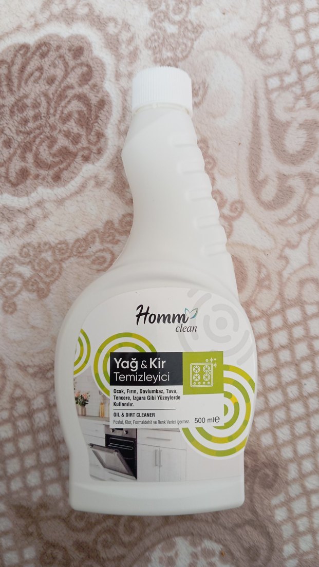 Homm bitkisel yağ ve kir temizleyici, ocak, fırın, davlumbaz gibi yüzeylerde yağ ve kirleri temizler. Fosfat, asit ve renklendirici içermez. 500 ml.