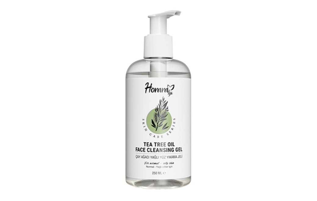 Homna Çay Ağacı Yağlı Yüz Temizleme Jeli, normal ve yağlı ciltler için çay ağacı yağı ile nazikçe temizler. 250 ml pompalı şişede.