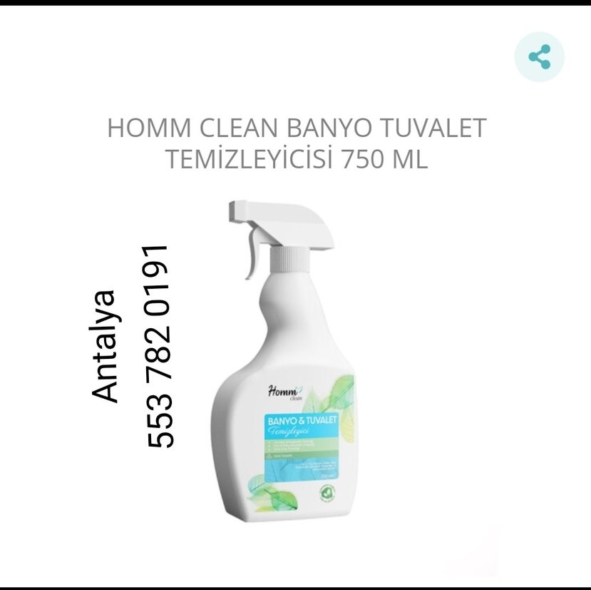 Homm Clean 750 ml sprey şişede banyo ve tuvalet temizleyicisidir, etkili temizlik sağlar.