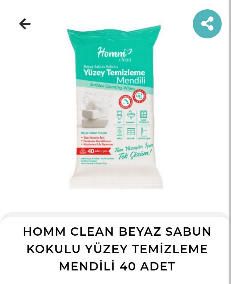 Homm Clean Beyaz Sabun Kokulu Yüzey Temizleme Mendili 40'lı