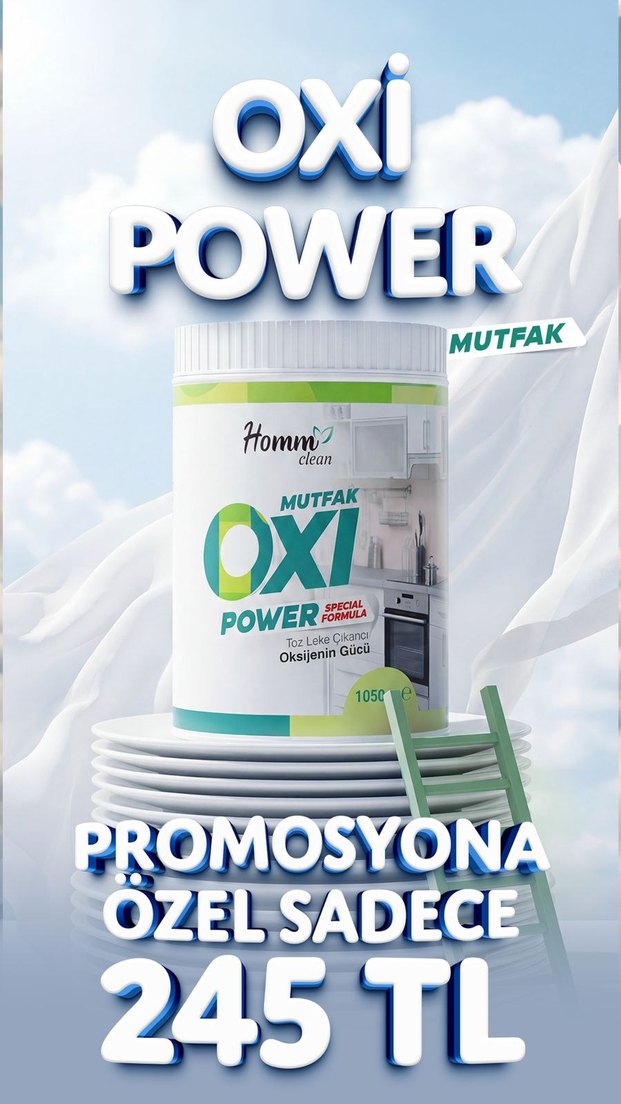 Homm Clean mutfak için oksijen gücüyle toz temizleyici. Lekeleri etkili şekilde çıkarır. Promosyon fiyatıyla sunulur.