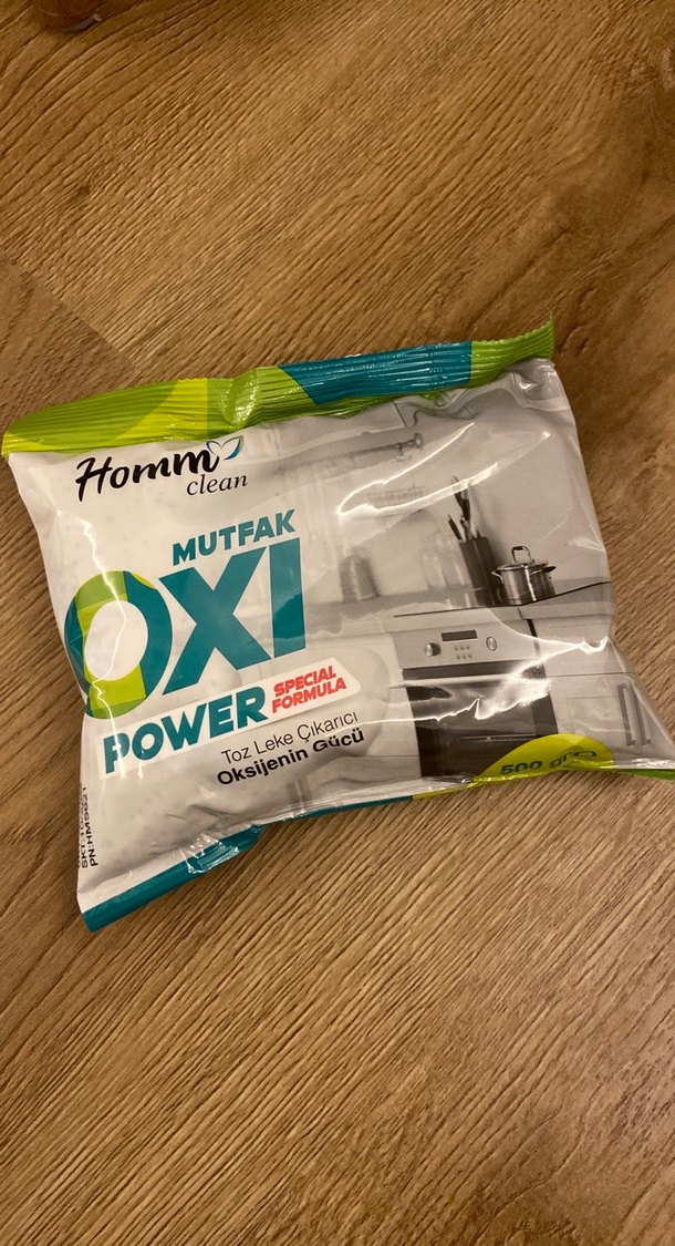 Homm Clean mutfak için özel formüllü Oxi toz leke çıkarıcı, oksijen gücüyle lekeleri temizler.