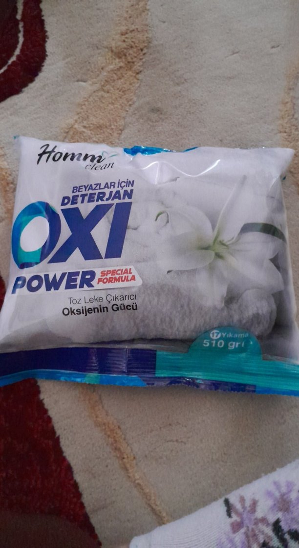 Homm Clean Oxi Power, beyazlar için oksijen gücüne sahip toz leke çıkarıcı deterjandır. 510 gram ağırlığındadır.