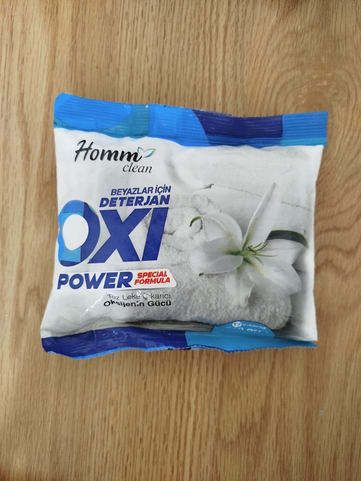 Homm Clean Oxi Power beyazlar için toz deterjan, özel formülüyle lekeleri çıkarır ve kumaşları parlatır. Açılmamış paket