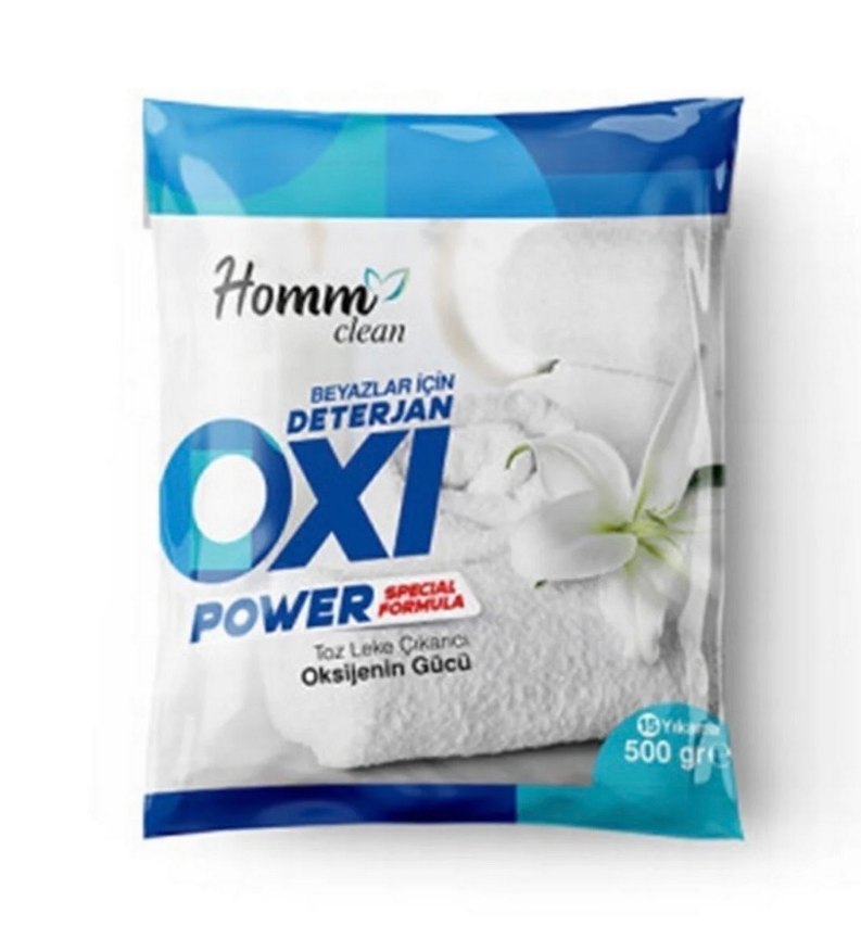 Homm Clean Oxi Power toz deterjan, beyazlar için oksijenin gücüyle leke çıkarır. 500 gram, 15 yıkama kapasitelidir.