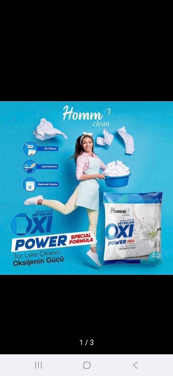 Homm Clean Oxi Power, oksijenin gücüyle toz leke çıkarıcıdır. Ön yıkama, suya bastırma ve makinede yıkama için uygundur.
