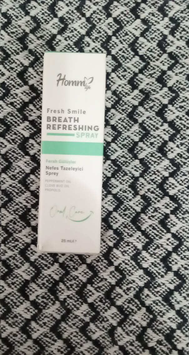 Homm Fresh Smile Nefes Tazeleyici Sprey, nane yağı, karanfil yağı ve propolis içerir, ağızda ferah bir his sağlar. 25 ml.