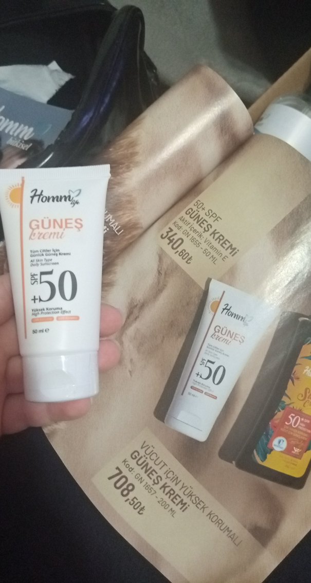Homm güneş kremi SPF 50+ ile tüm cilt tipleri için yüksek koruma sağlar. 50 ml tüp şeklindedir.