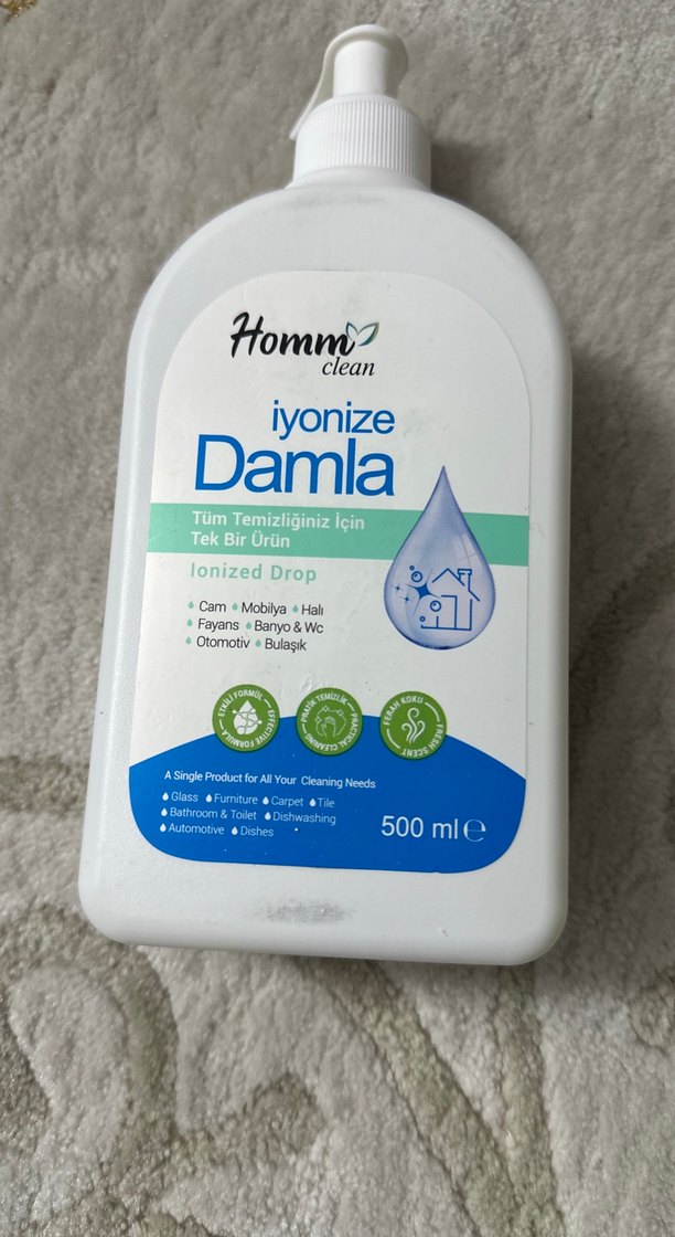 Homm İyonize Damla 500ml, cam, mobilya, halı, fayans, banyo, otomotiv ve bulaşık temizliği için uygundur.