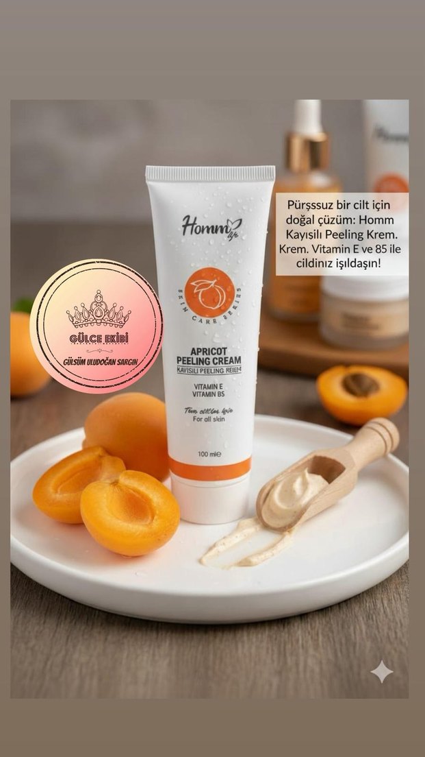Pürşssuz bir cilt için doğal çüzüm: Homm Kayısilı Peeling Krem. Krem. Vitamin E ve 85 ile cildinız işıldaşın!