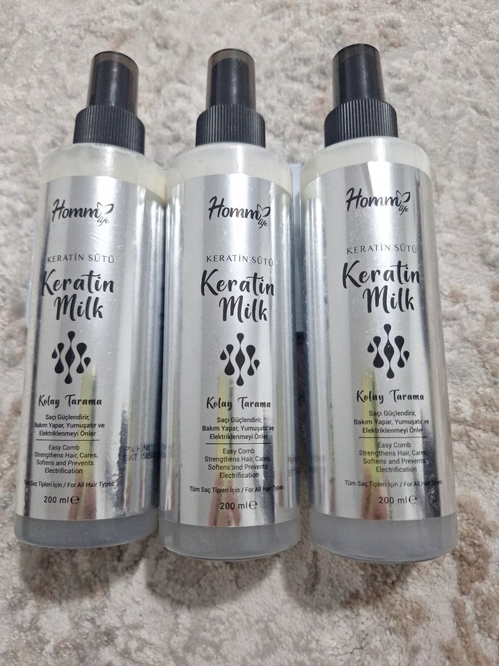 Homm Keratin Süt saç spreyi saçları güçlendirir ve yumuşatır. Kolay tarama sağlar, keratin ve süt içerir. Tüm saç tipleri için uygundur. 200 ml. ♀️