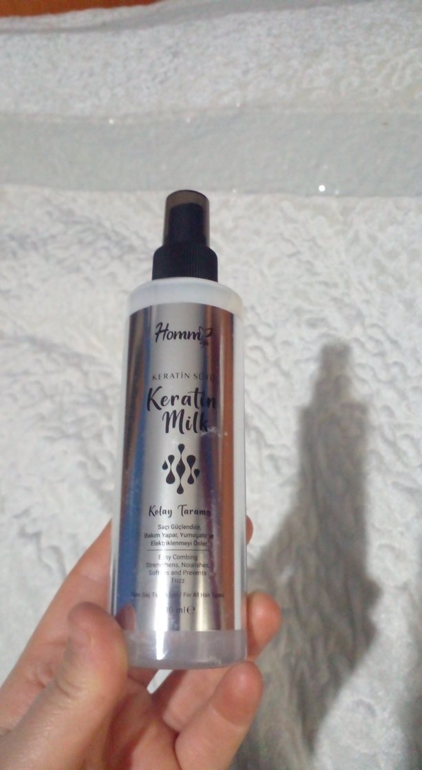 Homm Keratin Süt saç spreyi, keratin ile saçı besler ve korur, pürüzsüzlük ve parlaklık sağlar. Saç dokusunu sağlıklı tutmaya yardımcı olur. ♀️