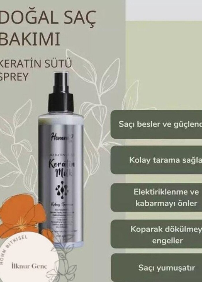 Homm keratin sütü besler güçlendirir kolay tarama saglar elektriklenmeyi ve kabarmayı önler