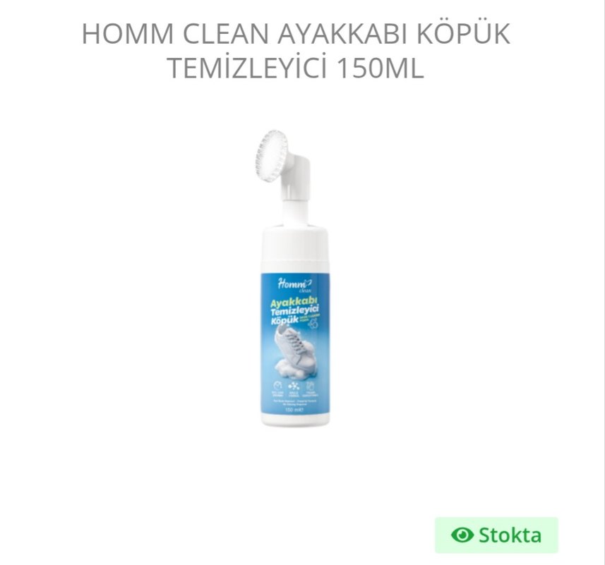 Homm Life markalı, entegre fırçalı ayakkabı temizleyici köpük, 150ml hacminde kolay ve etkili temizlik sağlar.