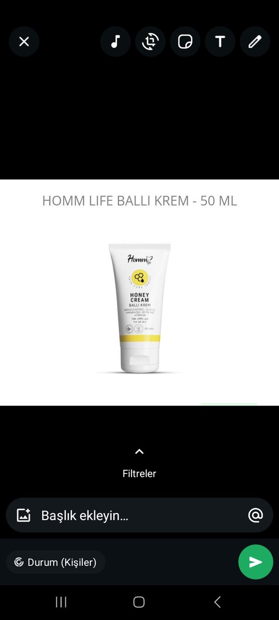 Homm Life bitkisel 50 ml boyutta, doğal bal kokulu nemlendirici kremi.