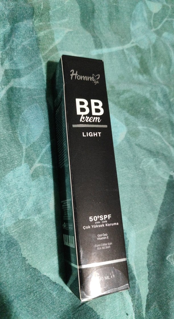 Homm Life BB krem açık bej tonunda, 50+ SPF ile çok yüksek koruma sağlar. Gül suyu ve E vitamini içerir, tüm cilt tipleri için uygundur.