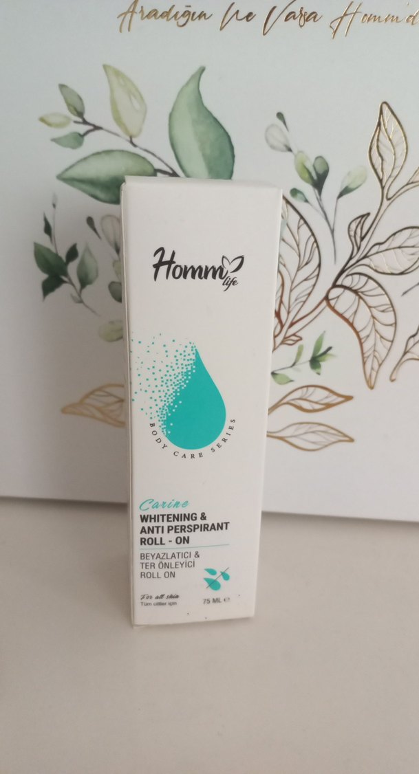 Homm Life beyazlatıcı ve ter önleyici kadın roll-on, terlemeyi önler ve koltuk altı cildini beyazlatır. 75 ml.