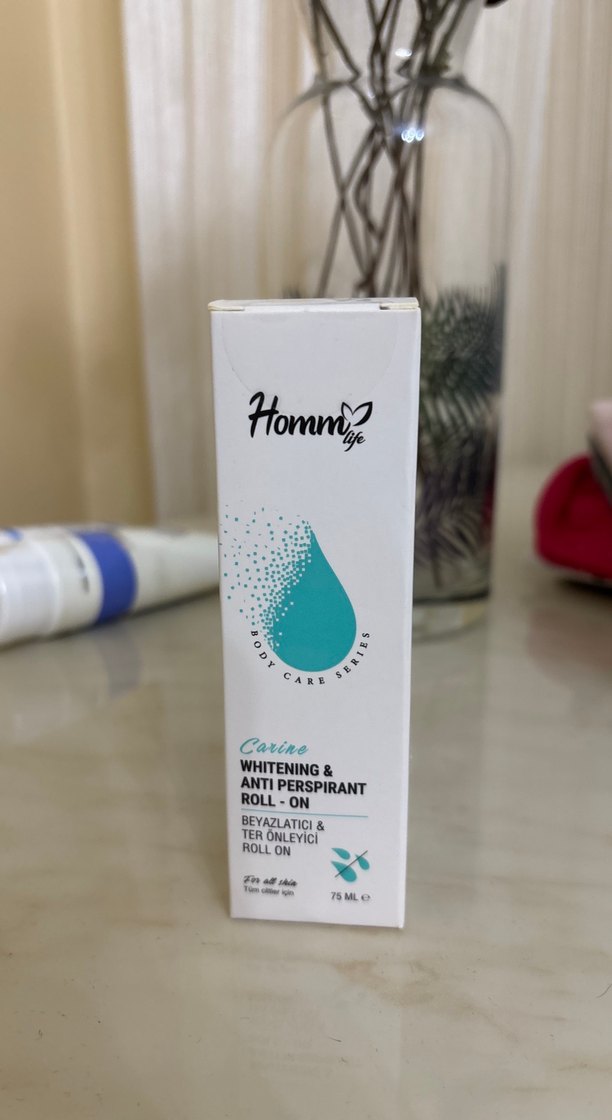 Homm Life Carino roll-on deodorant, 75 ml, beyazlatıcı ve ter önleyici özellikleri ile koltuk altını ferah ve kuru tutar.