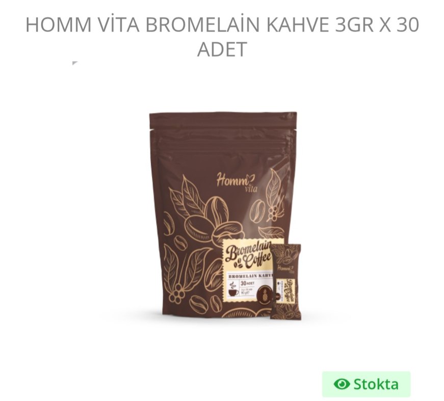 Homm Life Bromelain özlü koyu kahve tozu, 3g paketlerde sunulur. Farklı bir kahve deneyimi için uygundur. ☕
